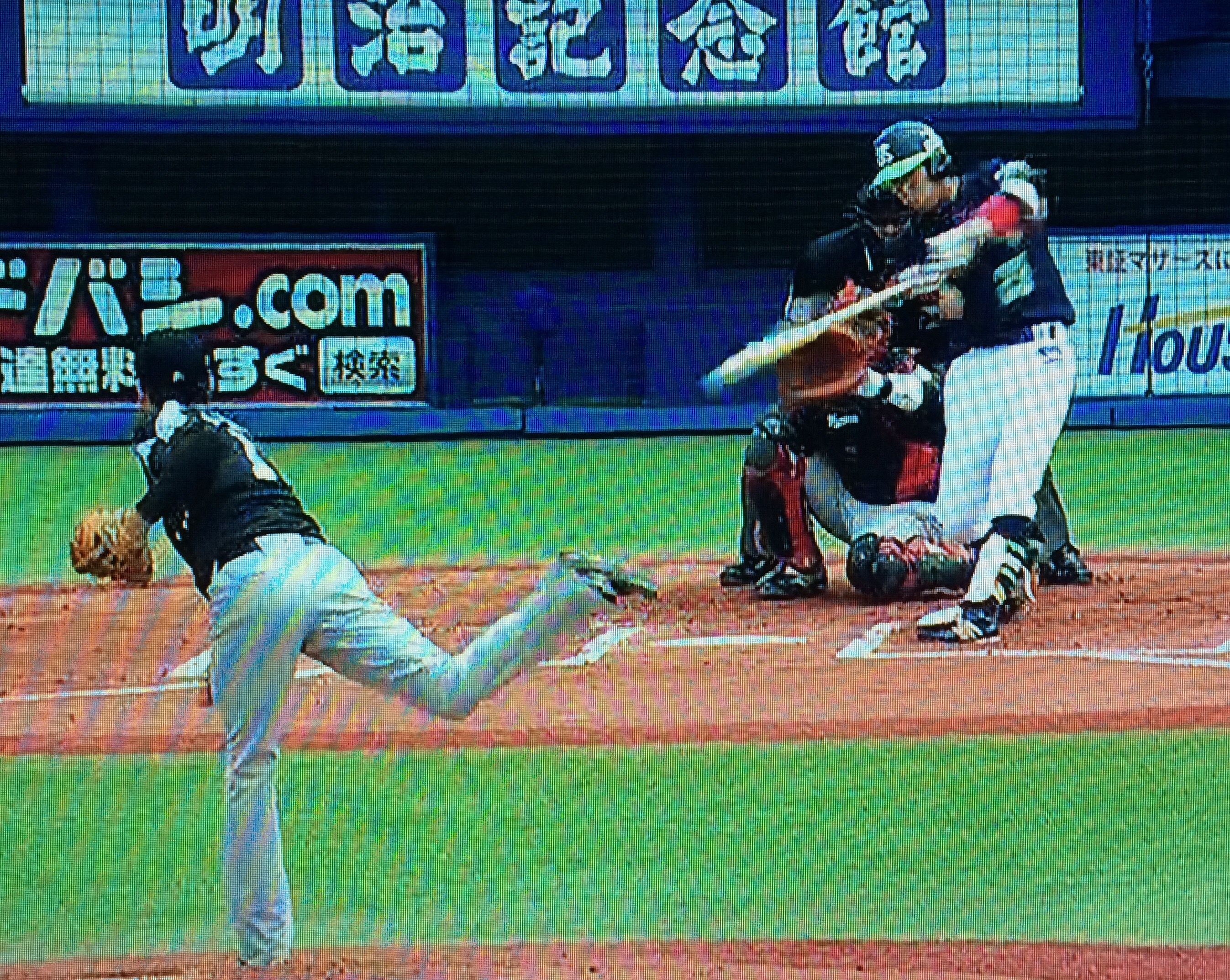 その後、雄平セカンドゴロで2,3塁となって、畠山が今日2つめの四球