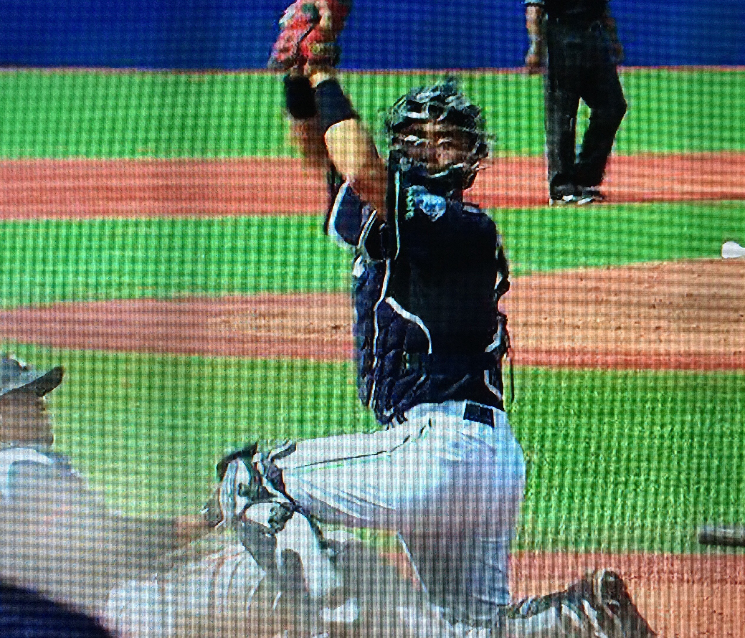 解説の平松さんが絶賛していた、難しい飛球を上田がキャッチ。
