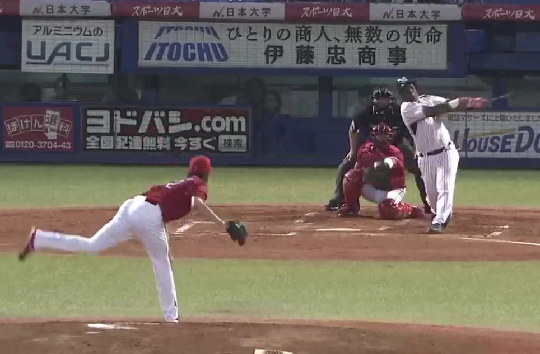 畠山だけアウトになるあたりだったのですが、広島の石原捕手がファーストに送球ミス。