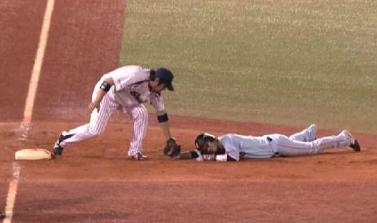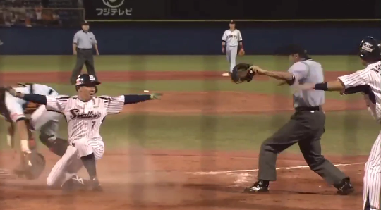 また、3回には山田が四球、バレの打席でファースト牽制悪送球で2進、