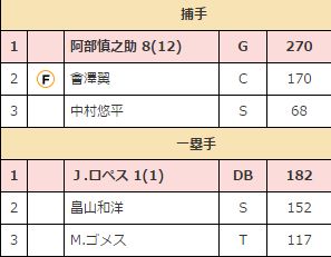 まずスワローズが1位はまぁ、当たり前というか、お約束というか。